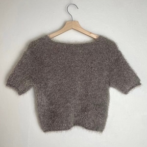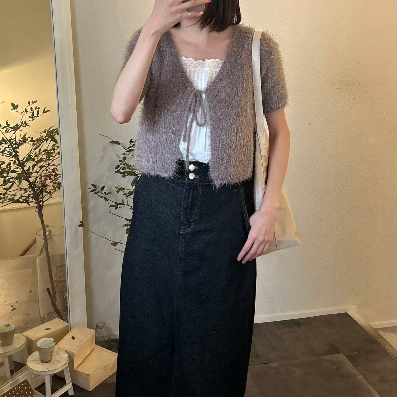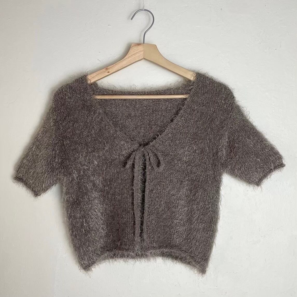 柔らかなシャギー素材を使用したリボンデザインのカーディガンです。ふわっとした質感が心地よく、優雅なシルエットが女性らしさを際立たせます。シンプルながらもリボンがアクセントとなります。