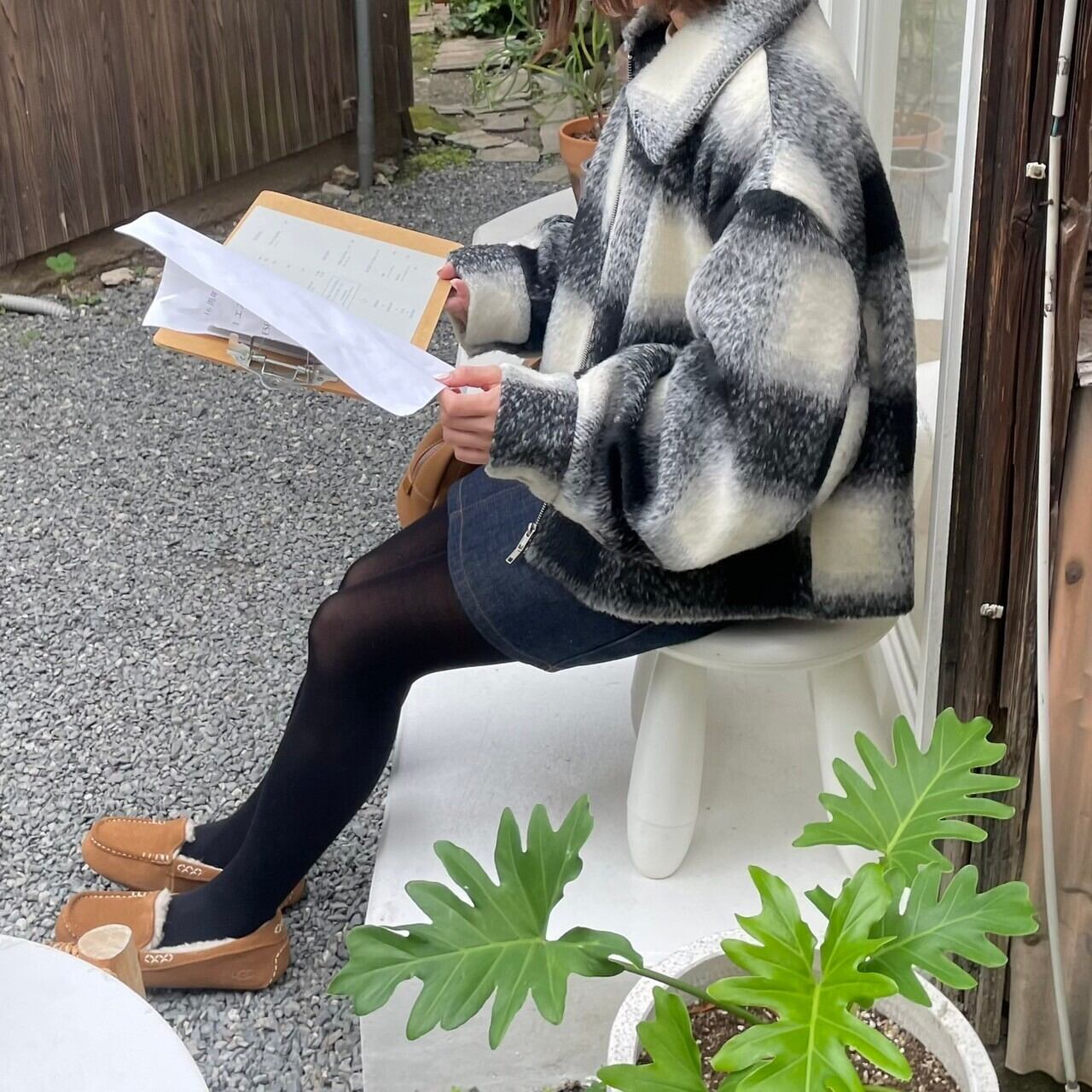 インパクトのあるチェック柄が目を惹くブルゾン。