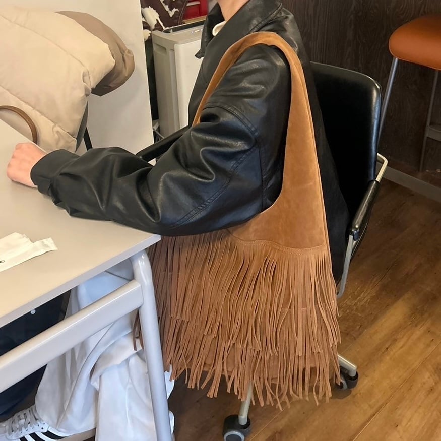 スエード素材で高見えし、二段のフリンジがとても可愛らしい仕上がりです。
