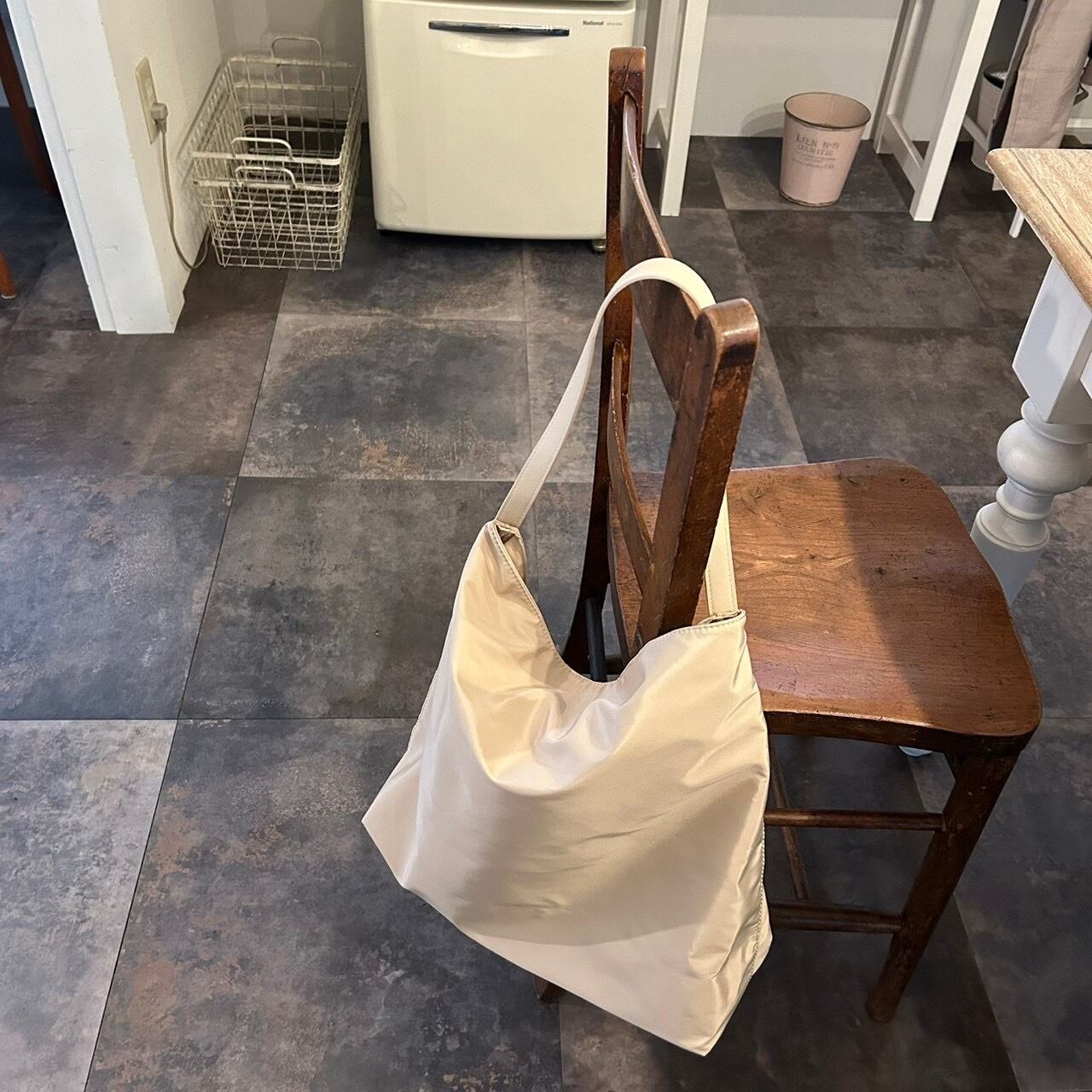 持つだけでスタイリッシュに決まる、クリーンな印象を与えるアイボリーのナイロンバックです。高耐久性で軽量のナイロン素材を使用しており、デイリーユースにぴったりの一品。シンプルなデザインながらも、ちょっとしたアクセントとして見せるストラップが特徴です。普段使いからお出かけまで幅広く活躍するバックです。