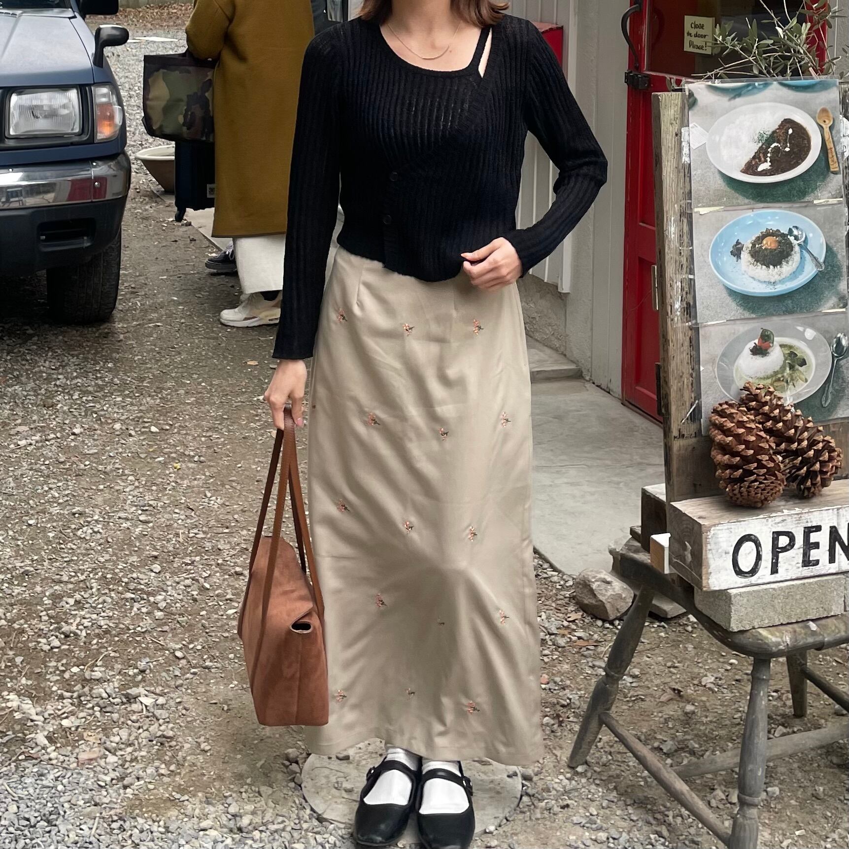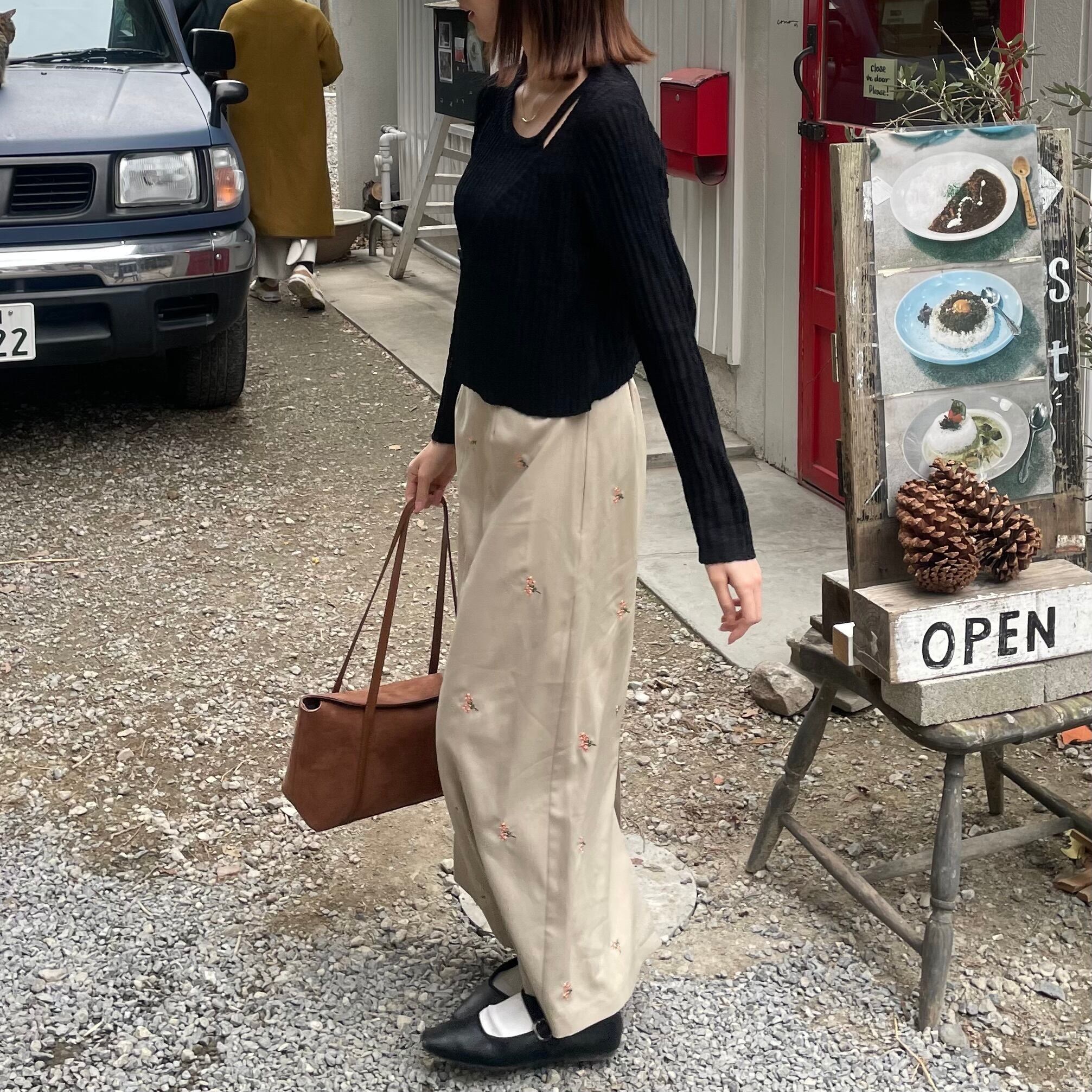 華やかな刺繍が施されたツイル生地のスカートです。上品なデザインが特徴で、カジュアルからフォーマルまで幅広いシーンに対応した一品。しっかりとした生地感ながらも、軽やかに動くことができるデザインが魅力です。腰回りは心地よいフィット感を実現し、フレアなシルエットが魅力的なスタイルを演出します。刺繍のディテールが視線を引き寄せるので、コーディネートの主役にもなれるアイテムです。